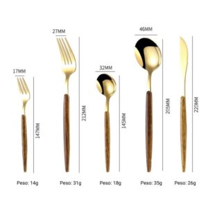 2. Calidad Inoxidable: Fabricados con acero inoxidable de alta calidad, estos cubiertos son duraderos y resistentes a la corrosión. La combinación de acero inoxidable y madera proporciona una sensación de lujo y durabilidad que perdura en el tiempo.